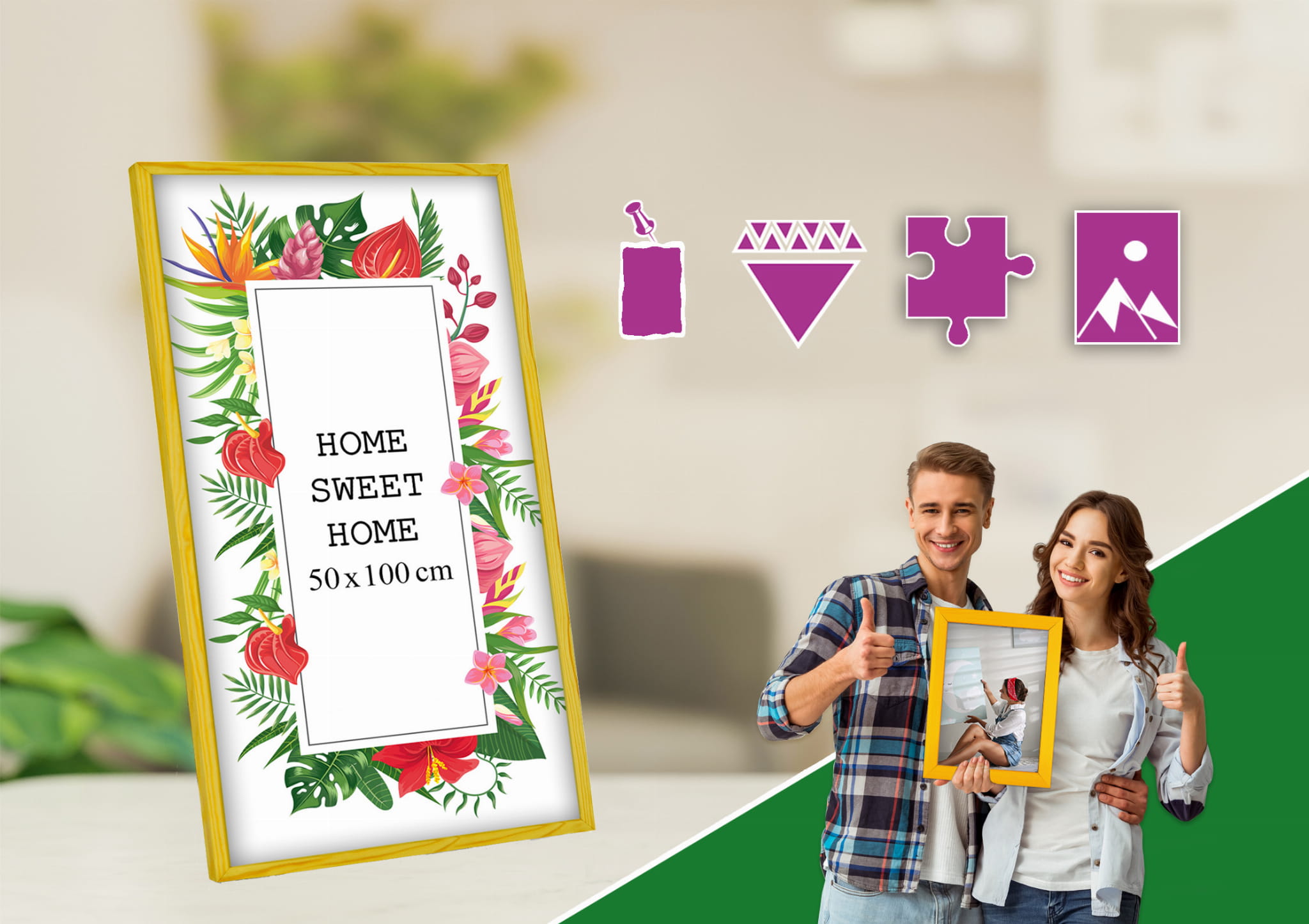 Wooden Yellow Photo Frame 20 x 40 in (50 x 100 cm)