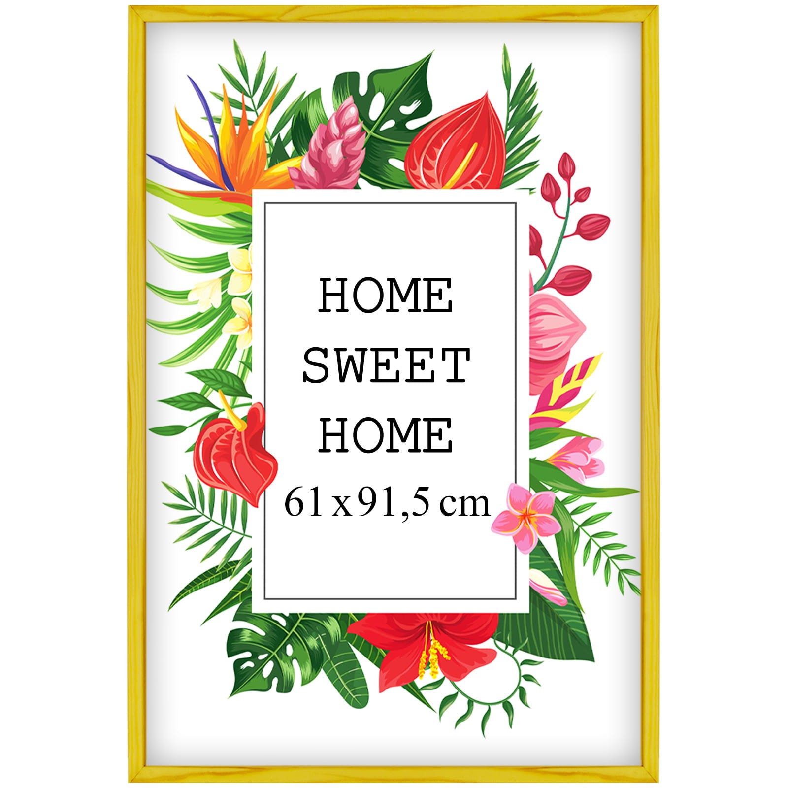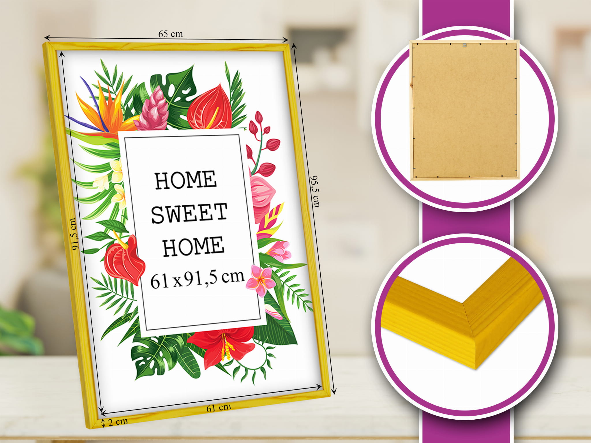 A simple frame that upgrades the room. I chose the yellow color and used it for a wedding photo in size 61x91,5 cm. Looks great in the living room. the hanging hardware feels secure, and it's easy to swap photos. It matches my decor perfectly. Good value for money. Overall, a great purchase.