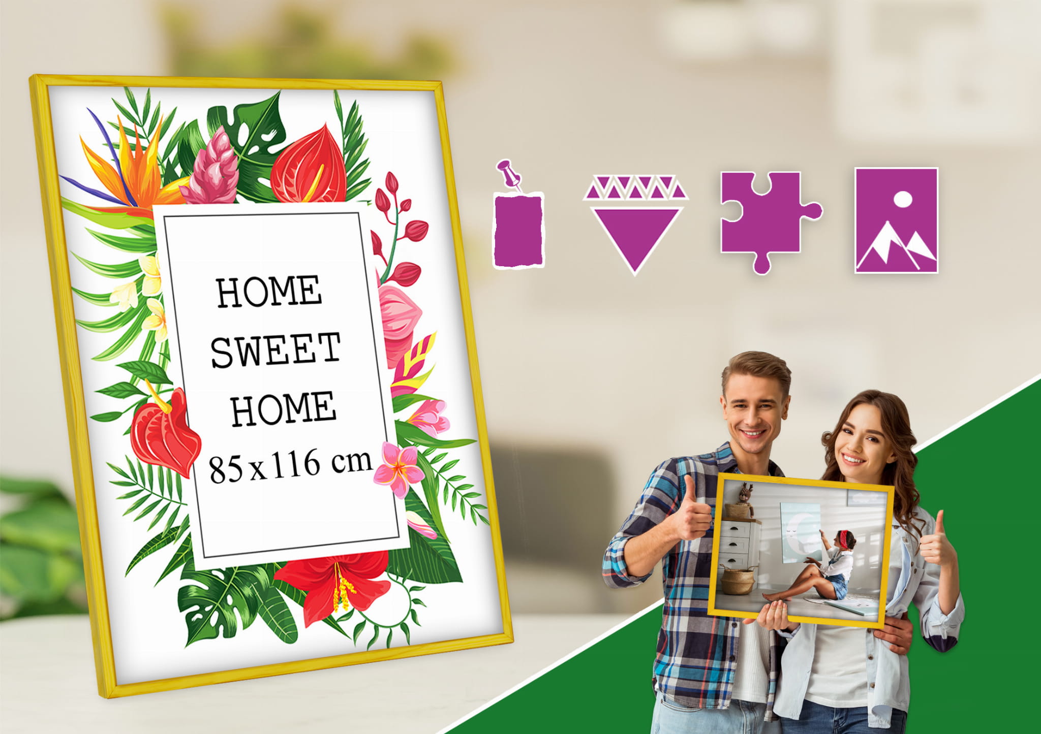 Minimal frame, maximum impact. I chose the yellow color and used it for a print in size85x116 cm. Looks great on the wall. the corners are well finished, and the color looks true to the photos. Perfect for mixing colors in a gallery wall. Everything arrived as described. Overall, a great purchase.