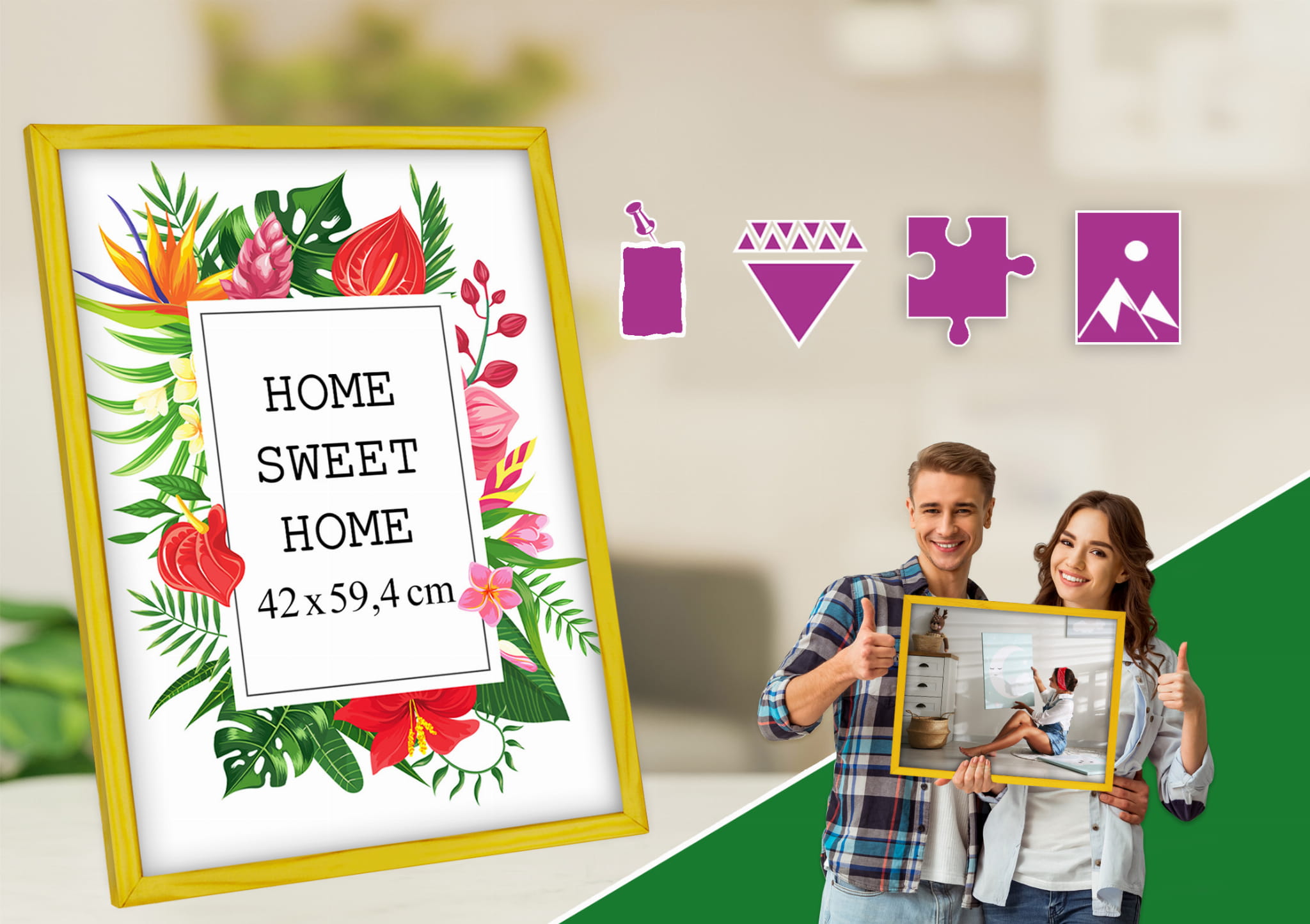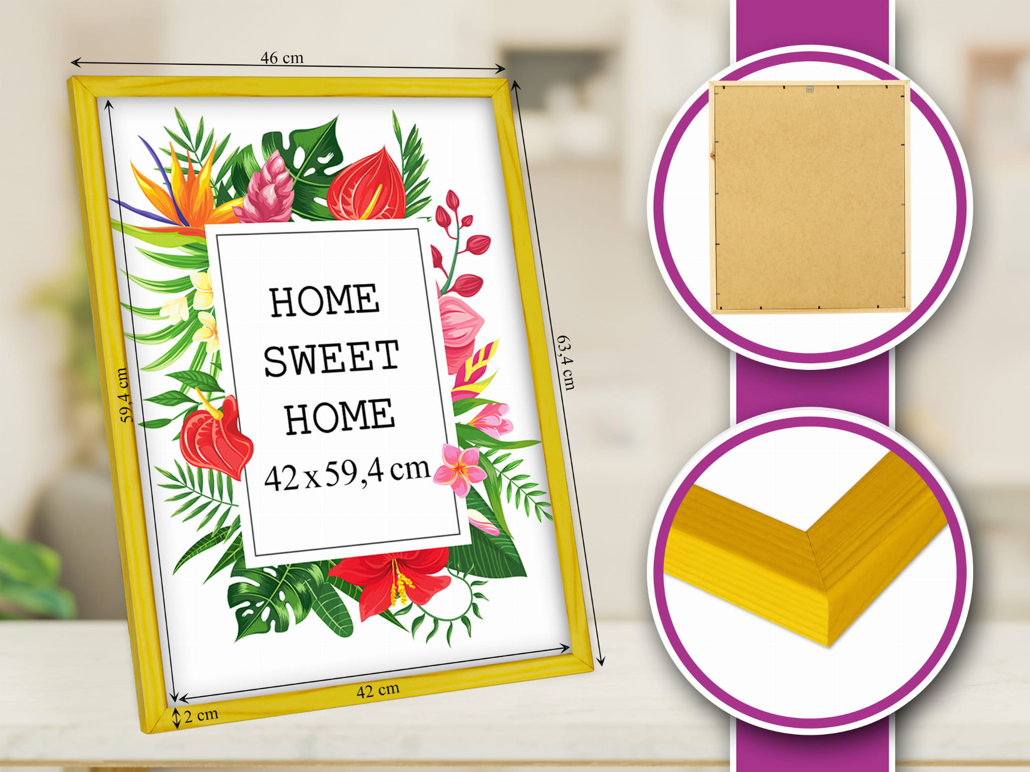 Wooden Yellow Photo Frame A2 17 x 23 in (42 x 59,4 cm)