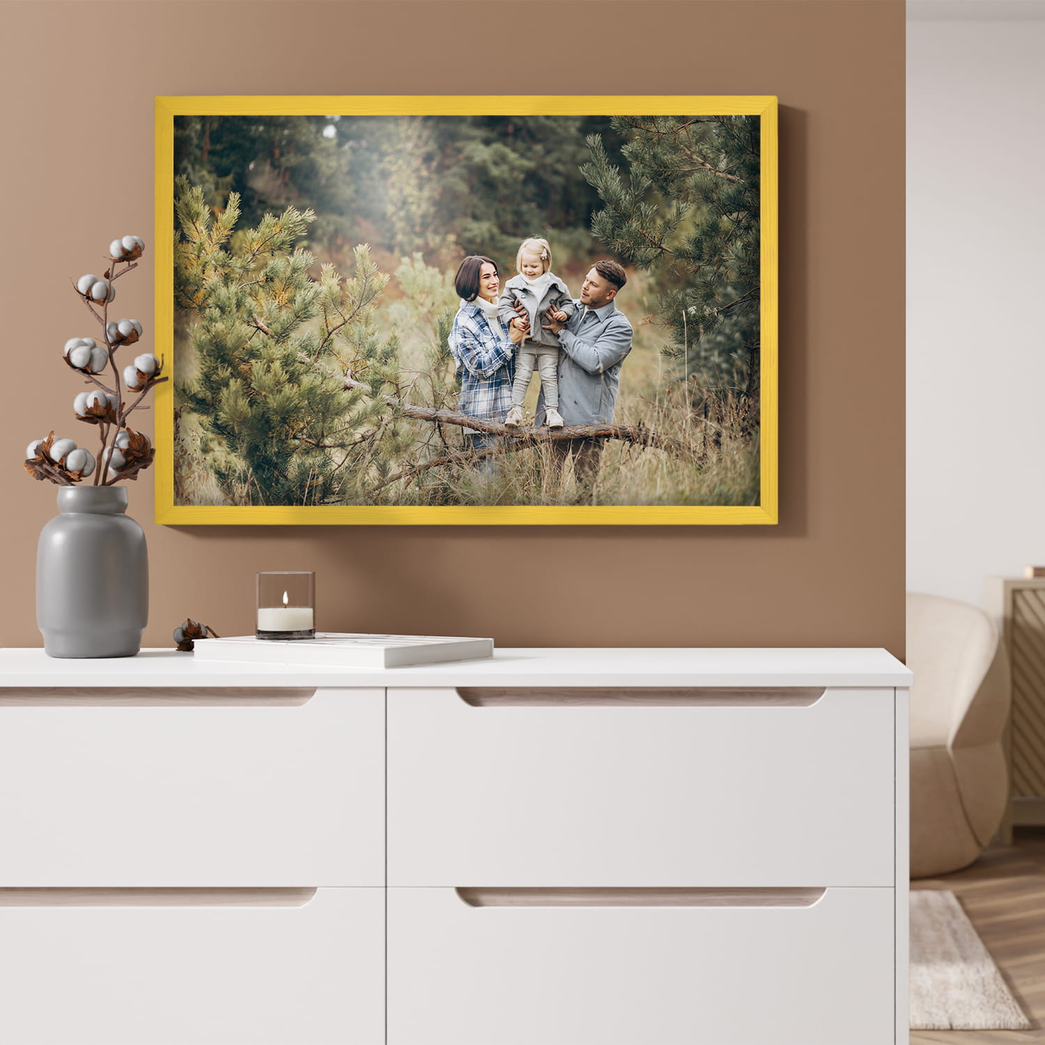 Yellow photo frame 24 x 32 in (60 x 80 cm), made of natural wood
